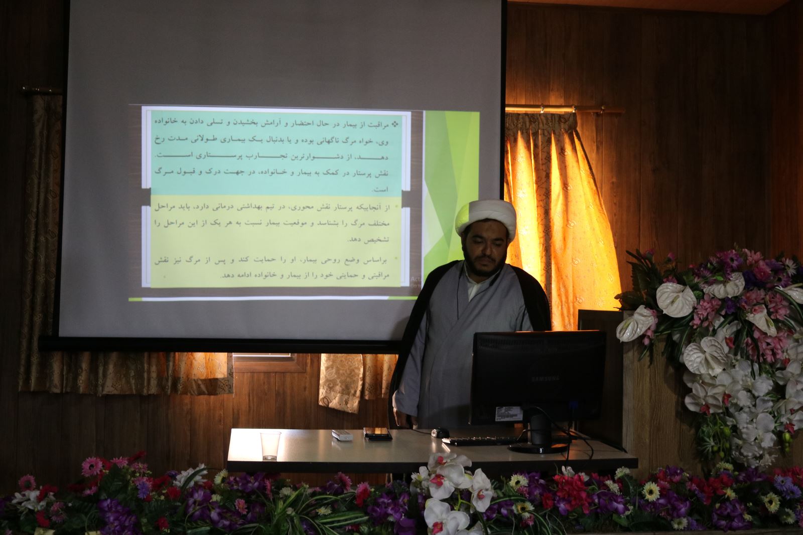به گزارش روابط عمومی مرکز آموزشی درمانی افضلی پور کلاس سلامت معنوی و مراقبت از بیماران درحال احتضار با تدریس حجت الاسلام و المسلیمن مجید حسنی مشاور رئیس دانشگاه در امور جوانان مورخ 18 اردیبهشت در سالن کنفرانس پرستاری این مرکز برگزار شد.