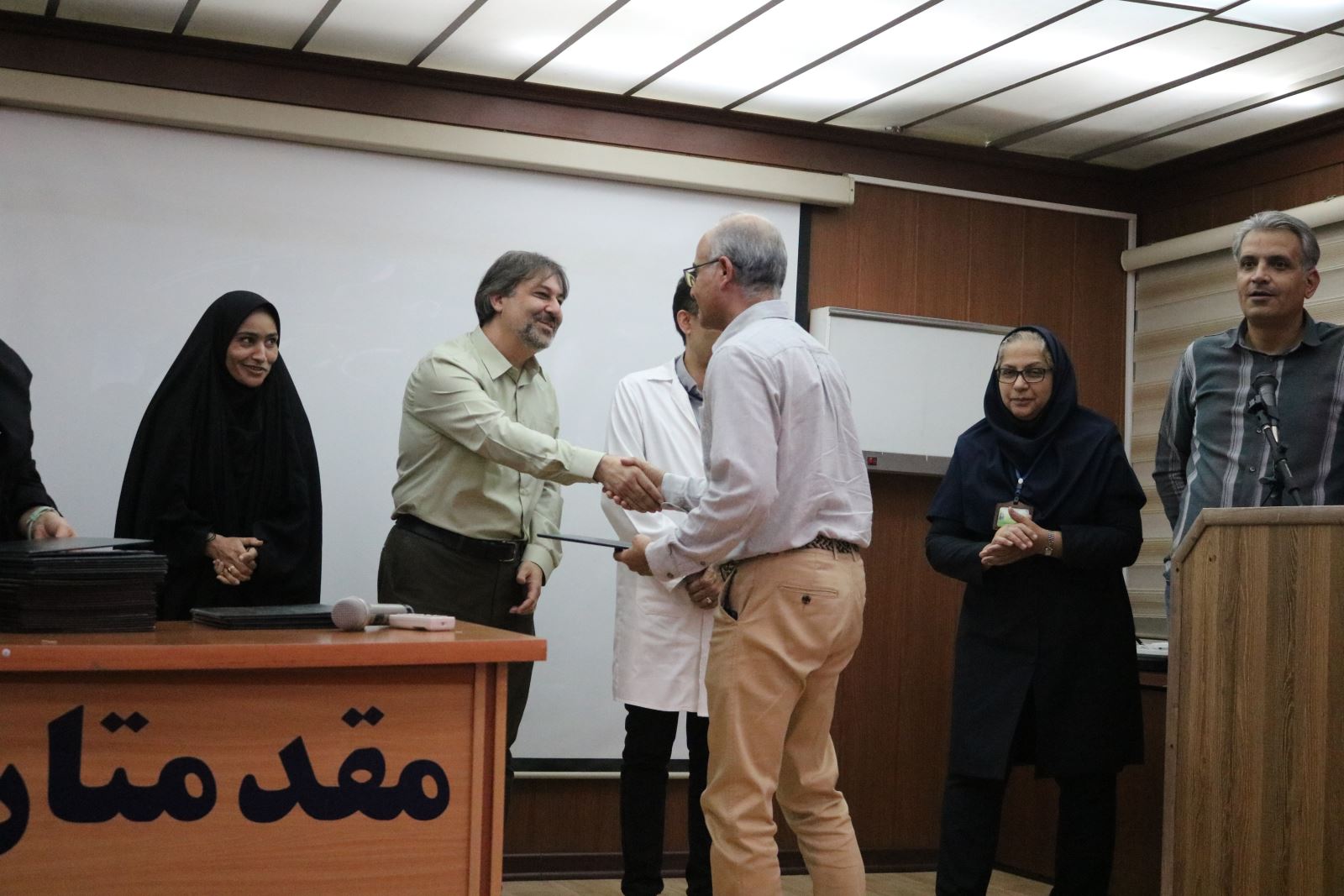 به گزارش روابط عمومی مرکز آموزشی درمانی افضلی پور، این مراسم با حضور دکتر رستم یزدانی رییس مرکز، دکتر بهرنگ شمسی نژاد معاون درمان، تعدادی از پزشکان، مسئولان و پرسنل در سالن کنفرانس مرکز آموزشی درمانی افضلی پور برگزار شد.